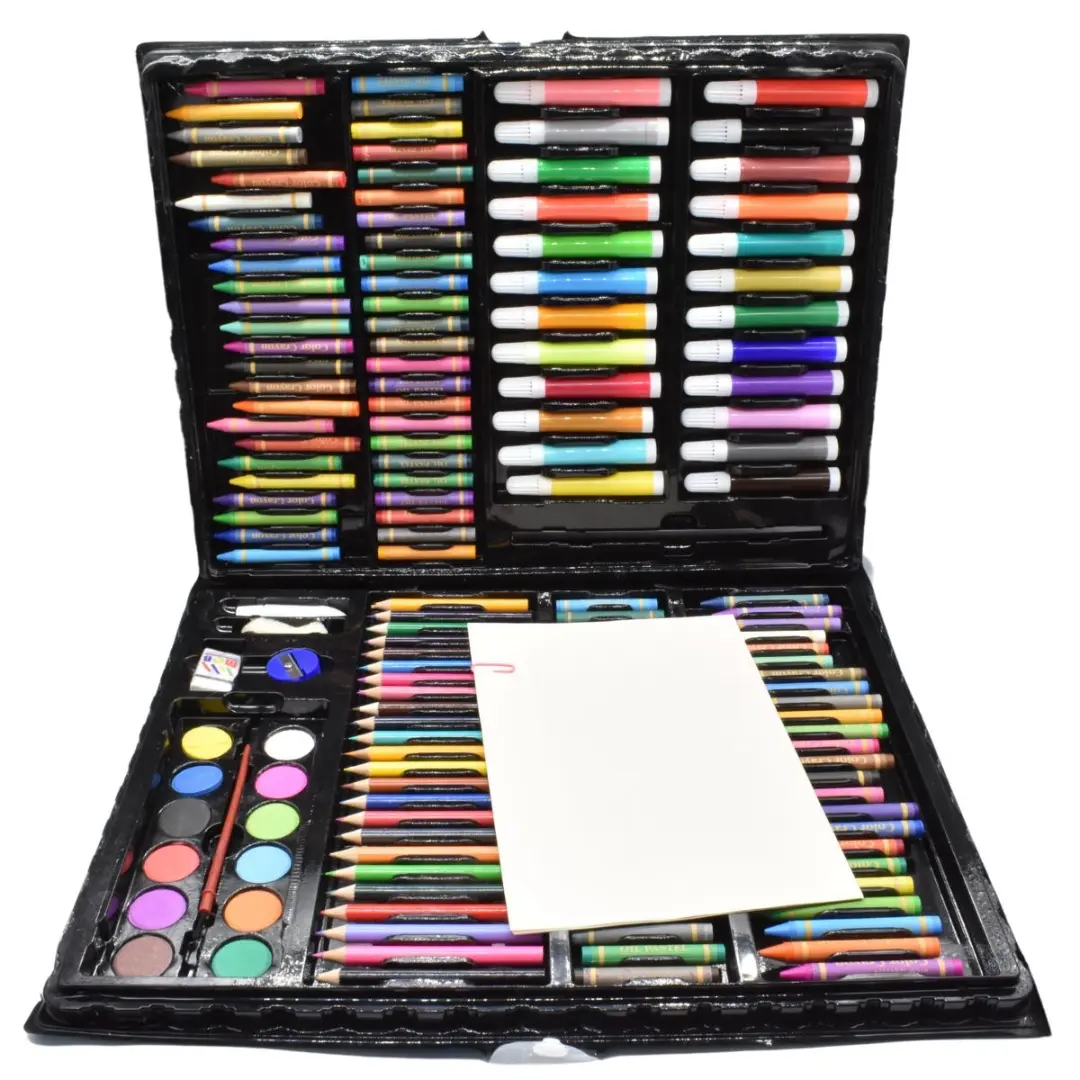 Set escolar en valija.Contiene 168 piezasIncluye: lápices de colores, marcadores, óleos pastel, crayolas, pinceles, goma, sacapuntas y figuras para colorear.